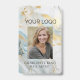 Mármore, moderno, gol, azul rosa, salão, Crachá de identificação de foto do funcionário com logotipo. Edite seu produto em alguns minutos adicionando seus dados. Você pode alterar a fonte/cor/posição por "personalização adicional".