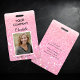 Crachá de Identificação de Funcionário de salão com brilho rosa moderno. Edite seu produto em alguns minutos adicionando seus dados. Você pode alterar a fonte/cor/posição com "personalização adicional".
