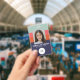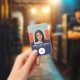 Crachá de Identificação e Logotipo de Funcionário Azul Marinho e Vermelho Elegante