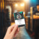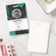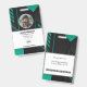 Crachá de identificação de funcionário da empresa com modelos criados para você. O fundo é um moderno abstrato em cores preta e verde.