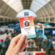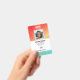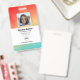 Crachá de identificação de funcionário de empresa com modelos criados para você. O fundo é um moderno abstrato em um gradiente de cor laranja, amarelo e verde.
