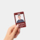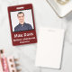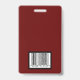 Crachá de identificação clássico de funcionário em design tradicional. Fundo burgundy. Todos os elementos são mutáveis ou removíveis. Elementos incluem: foto do funcionário, nome do funcionário, nome da empresa, departamento do funcionário. O verso do design tem código de barras de segurança. Espaço no topo para cordão.