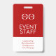 Crachás de identificação especiais para funcionários de eventos que incluem um modelo de logotipo que você pode substituir pelo logotipo ou gráfico da sua empresa ou evento. Projetado para funcionários corporativos, de festas, shows ou convenções e segurança.