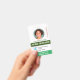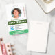 Uma moldura de foto circular dá um toque de classe a este crachá de identificação fotográfico. Faça o upload do seu próprio logotipo e detalhes e adicione mais informações no verso. Veja rapidamente o cargo e as permissões do usuário. Altere as cores do retângulo para se adequar ao seu local. Adequado para muitos cargos, desde funcionários docentes, voluntários, funcionários médicos, arrecadadores de fundos ou segurança, etc.