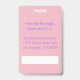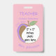 Um crachá rosa, com dupla face para professores com maçã. À FRENTE: adicionar o título (posição: professor, assistente de professor, bibliotecário, diretor, etc.). Acrescente o nome da escola e o ano escolar que este crachá será válido. substitua a imagem por uma foto de 2" x 2" do funcionário da escola. Abaixo da maçã, adicione o nome. Preencha a parte traseira com o texto adicional de que você precisa. O é também um espaço em branco fornecido para uma assinatura ou um código de bar.