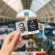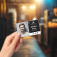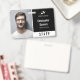 Crachá de identificação de funcionário com um design minimalista limpo em preto e branco. Adicione uma foto do funcionário junto com o nome e profissão. Personalize ainda mais com o logotipo da sua empresa.