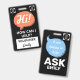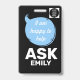 Torne os voluntários fáceis de identificar e acolhedores com este crachá de identificação de voluntário em forma de balão de diálogo de dupla face. A frente apresenta balões de diálogo amigáveis com a frase “Oi! Como posso ajudar” ao lado de Voluntário e espaço para adicionar um nome e logotipo. O verso diz “Estou feliz em ajudar — pergunte a [nome]”, garantindo visibilidade e acessibilidade de todos os ângulos.