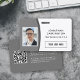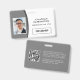 Crachá de identificação profissional minimalista e moderno com design cinza. Personalize com o logotipo da sua empresa e foto do funcionário. Altere a cor ou deixe como está, e adicione sua URL para o código QR e edite as informações adicionais no verso, se necessário. Por favor, explore outras opções de crachás de empresa/funcionário na Coleção de Crachás Personalizados com Foto e Logotipo.