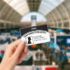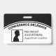 Crachá de identificação com foto moderno e elegante para CONGRESSO, mostrando um modelo de foto que é PERSONALIZÁVEL, para que você possa substituí-lo por uma foto ou logotipo de mesmo formato. O título curvo e o nome e texto da empresa são todos personalizáveis para que você adicione seus próprios detalhes. No verso, há texto opcional. Disponível em outras cores.