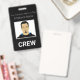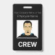 Este crachá de identificação fotográfica personalizado apresenta uma fotografia de amostra no centro. O título "TRIPULAÇÃO" é impresso abaixo dela em fonte branca em negrito sobre um fundo preto para significar o indivíduo como membro da tripulação para o seu evento. Você pode incluir o nome da sua empresa ou texto adicional acima da imagem, bem como o nome de um funcionário. A parte de trás do crachá apresenta informações adicionais do funcionário ou da empresa impressas sobre um fundo preto, com um código de barras de amostra colocado na parte inferior. Você pode substituir o código de verificação pelo seu próprio ou por outra imagem, como um logotipo personalizado.