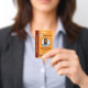 Este crachá de identificação empresarial laranja vibrante é projetado para identificação profissional e segurança. Com um espaço dedicado para o logotipo da empresa, foto do funcionário e detalhes essenciais como nome, cargo e número de identificação, ele garante fácil reconhecimento e controle de acesso. O verso inclui um endereço de devolução e espaço para informações adicionais, tornando-o ideal para situações de achados e perdidos. Sua cor ousada e layout claro o tornam um acessório funcional e elegante para qualquer empresa, promovendo um ambiente de trabalho seguro e organizado.
