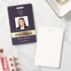 Personalize facilmente este crachá de identificação profissional de luxo em roxo e ouro com os seus detalhes personalizados.