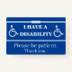 Crachá azul. Eu tenho uma deficiência. Por favor, seja uma patente. Alertar os outros para deficiências não vistas. Dê isso ao pai, irmão, avô, amigo, filho, mais. Podem vestir em público para que todos saibam que podem precisar de um pouco mais de tempo do que outros. Personalize, apague as costas e adicione suas próprias palavras. Pode adicionar um nome, número de telefone de emergência ou alerta para doença ou condição. Escolha editar. Um presente bem pensado.