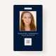 crachá azul marinho de identificação de fotos de funcionários com o logotipo da empresa. Substitua a foto por sua e altere o texto. É fácil adicionar o logotipo da empresa. Crachá moderno e simples dos empregados.