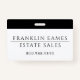 Adicione seu nome e tipo de negócio a este simples crachá profissional de negócios.