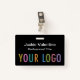 Personalize nosso crachá de nome plástico PVC profissional com o logotipo da sua empresa, nome do funcionário, título do trabalho ou outro texto personalizado. Disponível com um pátio, clipe de metal ou bobina retrátil. Projetado em preto e outras cores com uma design moderna minimalista pela MISOOK. Todas as cores são personalizáveis. As dimensões são de 3,38 polegadas x 2,13 polegadas. Nenhuma quantidade mínima de ordem e nenhuma taxa de configuração. Todas as encomendas são satisfeitas pela Zazzle em produtos do Zazzle. O MISOOK NÃO tem suas informações de personalização, envio ou cartão de crédito, portanto entre em contato diretamente com a Zazzle para fazer perguntas, inclusive sobre como personalizar seu design.