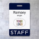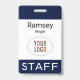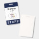 Personalize facilmente nosso crachá de nome de funcionarios profissional com o logotipo da sua empresa, o nome do funcionário ou outro texto personalizado. É plástico pvc e disponível com um jardim, clipe ou um rolo retrátil. Projetado em azul marinho e outras cores com um design minimalista moderno pela MISOOK. Todas as cores são personalizáveis. Nenhuma quantidade mínima de ordem e nenhuma taxa de configuração.