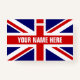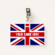 Crachá de nome personalizado com bandeira da bandeira do Reino Unido. Nomes de etiqueta plásticos disponíveis com o clipe e a opção de jardim. Texto personalizável. Como opção, adicione uma foto no verso. Identificação útil para escritório, trabalho voluntário, eventos, reunião, reunião, delegação, equipe esportiva, grupo, festival de música, festa e muito mais. Orgulho inglês. Bandeira britânica do Reino Unido, Grã-Bretanha Excelente.