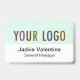 Personalize facilmente nosso crachá de nomes plásticos de duro profissional com o logotipo da sua própria empresa, o nome do funcionário, o título do cargo ou outro texto personalizado. É feito de plástico PVC durável. Projetado em verde-menta e outras cores com uma design moderna minimalista do MISOOK. Todas as cores são personalizáveis. Disponível com um pátio, clipe de metal ou bobina retrátil. As dimensões são de 3,38 polegadas x 2,13 polegadas. Nenhuma quantidade mínima de ordem e nenhuma taxa de configuração. Todas as encomendas são satisfeitas pela Zazzle em produtos do Zazzle. O MISOOK NÃO tem suas informações de personalização, envio ou cartão de crédito, portanto entre em contato diretamente com a Zazzle para fazer perguntas, inclusive sobre como personalizar seu design.