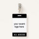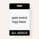 Personalize este simples e moderno crachá de passagem de evento de acesso com seu logotipo. Se o seu logótipo for quadrado, preencherá inteiramente o espaço branco. Se o seu logotipo não estiver quadrado, aparecerá em fundo preto. A parte traseira do crachá pode ser personalizada com o nome do evento e a data ou ano, ou você pode excluir ambos para ter um todo preto de volta. Este crachá minimalista de acesso é ideal para vários tipos de passagens em eventos especiais, festivais, concertos e convenções. Você pode personalizar facilmente o nome da passagem, se quiser.