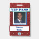 O Crachá Plástico VIP PASS - Vertical, esses crachás são perfeitos para eventos especiais, reuniões e apresentações. Clique em Personalizar e personalizar este crachá com uma foto, logotipo e texto. O VIP PASS mede 2,13 polegadas x 3,38 polegadas, é feito de plástico de PVC, é durável e não desaparece nem rasga.