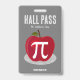 Crachá Hall Pass. Arte vetorial original de uma maçã com um símbolo pi em uma placa.