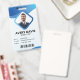 Personalize esses crachás verticais com uma foto e nome do funcionário, juntamente com duas linhas de texto personalizado adicional para número de ID do funcionário, cargo ou título, localização ou outros dados importantes. Adicione seu logotipo no topo. Campo de texto personalizado adicional localizado no verso para informações de devolução ou outros detalhes.