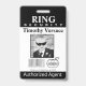 Personalize o crachá do agente de segurança do anel com agradecimentos à sua nota e área de fotos para o seu portador do anel.