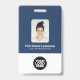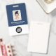 Personalize facilmente este Crachá de Nome de Funcionário Personalizado com Foto, Código Qr de Leitura (sempre legível, funciona!), e logotipo da empresa. Um design simples de negócios em cores azul-marinho e branco totalmente personalizável na frente e nas costas, tamanhos, fontes básicas e modernas sem serifa e uma aparência profissional e clara. Disponível com cordão, clipe de metal ou retrátil. Sem pedido mínimo.