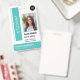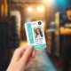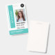 Crachá de design de turquesa universitária de identificação de foto do aluno. Cartão personalizado de identificação do estudante - crachá elegante de identificação com o logotipo personalizado da sua universidade ou escola, fotografia, nome, título e outros detalhes - se necessário. Você pode mudar facilmente a cor dos elementos de design, basta ir para a barra de ferramentas e selecionar a cor de design desejada em uma das camadas. Fácil de personalizar com seus detalhes. Adequado também para professores, bibliotecários, outros funcionários, gerentes, executivos, funcionarios de escritórios de negócios, funcionários de depósito, varejo corporativo e empresas logísticas. Observe que a cor de fundo, as fontes e os tamanhos do texto podem ser alterados. Você pode carregar um código QR ou um código de bar ou adicionar qualquer outra informação na parte traseira.