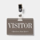 Este design de crachá vintage apresenta a mensagem "VISITANTE", e um nome de empresa personalizável ou outra mensagem personalizada. Um crachá como este pode ser usado para identificar que alguém em um local de trabalho ou empresa é um convidado/visitante autorizado. [~Z0000307]