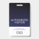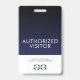 Mantenha seu hospital ou instalação médica segura com estes crachás de Visitante Autorizado personalizáveis. O design azul marinho e branco apresenta um logotipo e texto personalizáveis, com a importante mensagem "A remoção não autorizada do crachá é estritamente proibida" exibida na parte inferior. Esses crachás são perfeitos para identificar visitantes autorizados e garantir que eles tenham permissão para estar em áreas restritas.