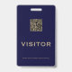 Mantenha seus visitantes e convidados facilmente identificados com este simples crachá de visitante QR personalizável. O design azul e dourado apresenta um código QR personalizável e texto que diz "Visitante" em uma fonte clássica. O código QR facilita para os convidados acessarem informações importantes sobre sua instalação ou evento. O texto na parte inferior lembra aos visitantes que por favor devolvam o crachá antes de sair. Este crachá é perfeito para empresas, hospitais, escolas, museus, atracções e muito mais.