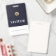 Mantenha o controle de visitantes e garanta a devolução de seus crachás com este crachá de visitante verde com um logotipo de selo metálico dourado polido que pode ser personalizado para sua marca com um banner de texto personalizável. O design é atraente e profissional, perfeito para qualquer negócio ou evento.