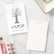 Você pode personalizar este crachá decorativo de visitante com o nome da sua empresa. No verso, há espaço para colocar o número do crachá para que você possa controlá-los, bem como seu endereço de devolução caso alguém perca o crachá.