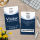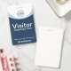 Crachá de visitante corporativo azul com código de
