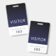 Crachás de visitante simples em um modelo de logotipo econômico com design de dupla face que você pode usar para substituir pelo logotipo ou gráfico da sua empresa. Usados como passes temporários para visitantes da empresa, convidados de eventos e convenções e muito mais.