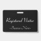 Este design opulente do crachá apresenta a mensagem "Visitante registrado" e um nome personalizável da empresa ou outra mensagem personalizada. Um crachá como este poderia talvez ser usado para indicar que uma pessoa é um convidado ou visitante conhecido e autorizado numa empresa ou no local de trabalho. [~Z0000307]