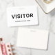 Crachá de visitante corporativo preto e branco. Design preto e branco moderno com fonte fácil de ler. Personalize este modelo de crachá de visitante, altere facilmente o texto e as cores neste design.