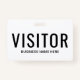 Crachá de visitantes corporativos. Design preto e branco moderno com fonte fácil de ler. Personalize este modelo de crachá de visitante, altere facilmente o texto e as cores neste design.