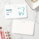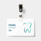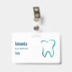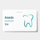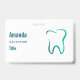 Nome de etiqueta com ilustração de um dente dentário. Desenhado com um contorno de gradiente verde.