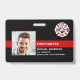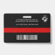 Identifique-se facilmente e ao seu bombeiro na estação com essa placa de identificação personalizada da bandeira da linha vermelha fina com foto, logotipo, código de barras, crachá de identificação do bombeiro. Personalize com foto do bombeiro, nome, número de identificação e departamento de bombeiros. Personalize a parte de trás com o logotipo e código de barras da sua estação de bombeiros, ou qualquer outra informação. Este crachá de identificação de bombeiro da linha vermelha fina é perfeito para todos os bombeiros, bombeiros voluntários, bombeiros, chefe, capitão e tenente. DIREITOS AUTORAIS © 2020 Judy Burrows, Black Dog Art - Todos os Direitos Reservados. Departamento de Bombeiros Crachá de Identificação Personalizado do Bombeiro com Foto