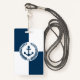 Design com temas náuticos, com decoração da soleira da âncora e da soleira do louro sobre fundo geométrico azul e branco