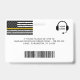 Identifique-se facilmente e ao seu despachante na estação com esses distintivos de identificação personalizados com foto, logotipo, código de barras e linha dourada fina para cartões de identificação de despachantes 911. Personalize com a foto do despachante, nome, número de identificação e departamento de polícia ou departamento de bombeiros. Personalize a parte traseira com o logotipo do despachante ou departamento e código de barras, ou qualquer outra informação. Esse distintivo de identificação de despachante com linha dourada fina é perfeito para todos os despachantes 911, despachantes de polícia, departamentos de polícia e departamentos de bombeiros. COPYRIGHT © 2020 Judy Burrows, Black Dog Art - Todos os Direitos Reservados. Distintivo Personalizado com Foto e Código de Barras com Linha Dourada Fina para Despachantes