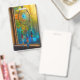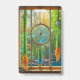 Bonito caçadora de sonhos azul e vermelha pendurada numa janela. Placa de vazio de Serene art.