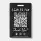 Receba pagamentos em qualquer lugar que faça negócios com este distintivo limpo e profissional de Códigos QR de Pagamento Scan to Pay 2 preto. Este distintivo leve permite que os clientes façam pagamentos instantaneamente com um rápido escaneamento -- perfeito para serviços móveis, eventos movimentados e checkout em movimento. O layout minimalista apresenta letras brancas modernas, uma chamada para ação de pagamento por escaneamento em negrito, códigos QR claramente centralizados em cada lado, uma mensagem amigável de "Obrigado" e seus perfis de mídia social no Facebook, Instagram e TikTok. Ideal para vendedores, artistas, bartenders, cabeleireiros, maquiadores, motoristas de entrega, vendedores de mercado e funcionários de eventos, este distintivo de pagamento vestível mantém o checkout rápido, sem contato e conveniente -- sem necessidade de espaço no balcão.
