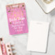 Distintivo de festa de despedida de solteira glamoroso, com gráficos de um fundo de folha rosa com brilho em tom dourado. Personalize o texto branco de acordo com as suas necessidades. Ótimo para festas de aniversário, festas de despedida de solteira, mais.