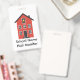 Uma ilustração gráfica vetorial (para impressão de alta qualidade) de uma escola vermelha com o texto (personalizável) Nome da Escola e Monitor de Corredor.
