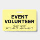 Este design de distintivo básico apresenta a mensagem "VOLUNTÁRIO DE EVENTO". Um distintivo como este poderia ser usado para mostrar que o usuário é um representante oficial em um evento. [~Z0000307]