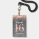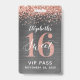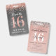 Uma maneira inteligente de convidar seus convidados para a sua festa de aniversário de sweet 16. Esses convites personalizados em formato de crachá VIP de sweet 16 em rose gold são certeiros para impressionar seus convidados. O design apresenta um metal banhado a rose gold falso com brilho prateado e uma fonte moderna de letra manuscrita. Personalize facilmente a frente e o verso deste modelo para a sua festa de aniversário de sweet sixteen. Os designs são ilustrações/gráficos impressos planos. Nenhum metal banhado real é usado. Desenhado para você por Blackberry Boulevard.